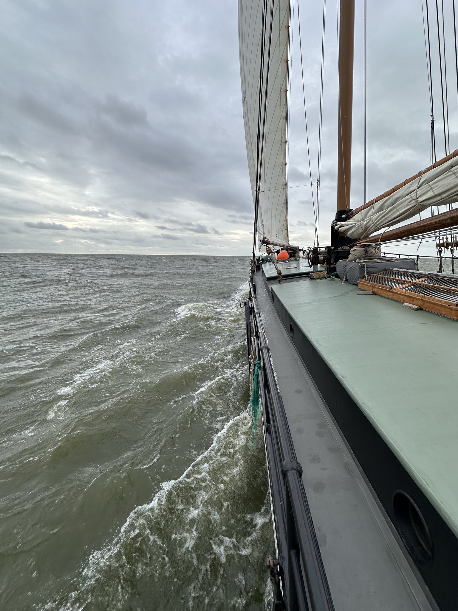 An Bord hieß es von Anfang an: Teamwork pur! Segel hissen, Leinen klar machen, Manöver fahren – und natürlich zusammen kochen, teilweise sogar während wir unter Segeln über’s Ijsselmeer gedüst sind. Zwischendurch gab’s entspannte Pausen: ein Nap im Netz am Klüverbaum oder einfach die Sonne auf dem Deck genießen.